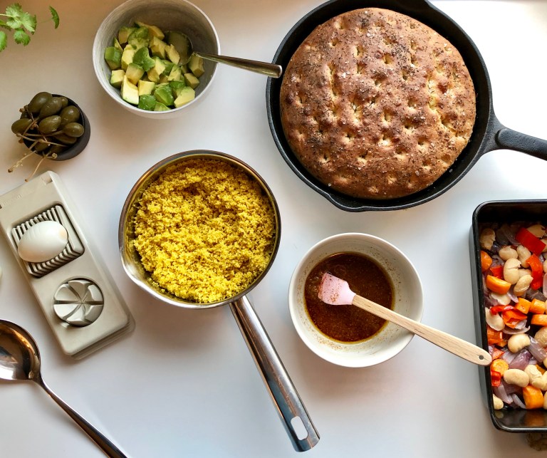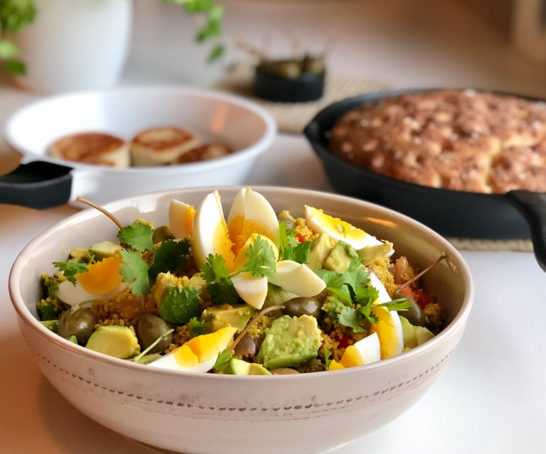 Fluff opp couscousen med en gaffel til den blir lett og luftig.