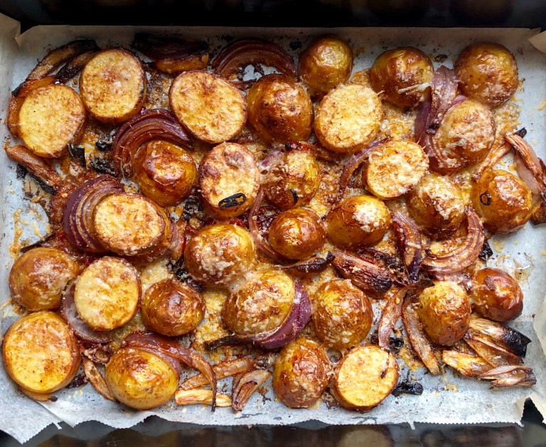 Ta ut formen igjen og fordel parmesanen over og sett formen tilbake i ovnen i 2-3 min.