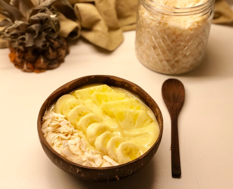 Hell det over i en kokosnøttskål og pynt med denne toppingen.