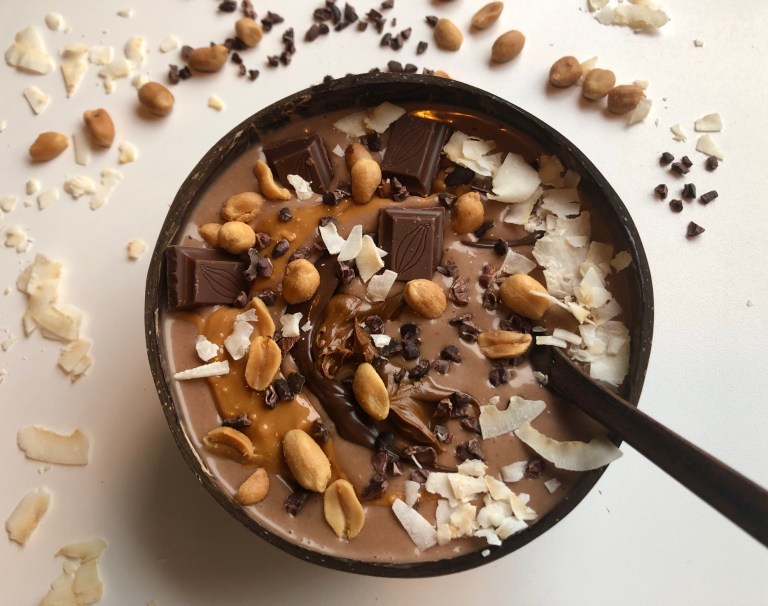 Hell det over i en kokosnøttskål og pynt med denne toppingen.
