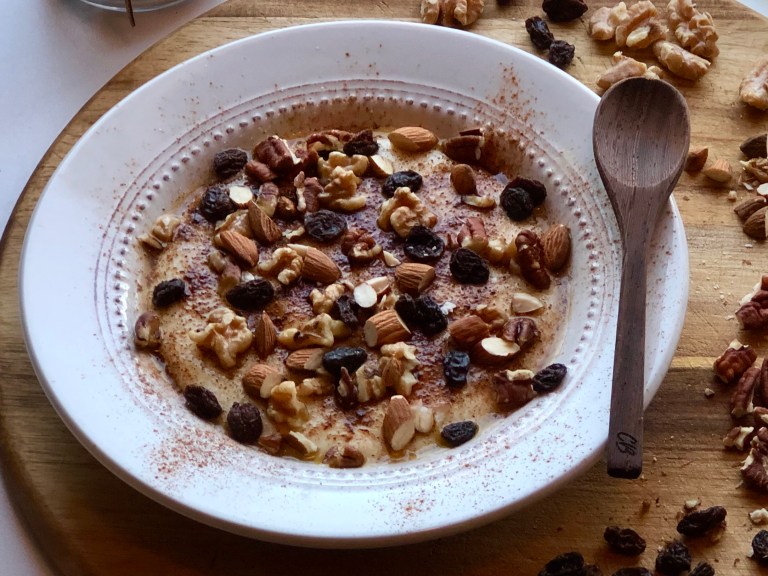 Ha grøten over i to skåler og ha på ønsket mengde toppinger. NYT!