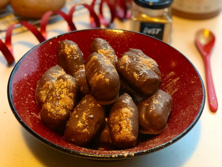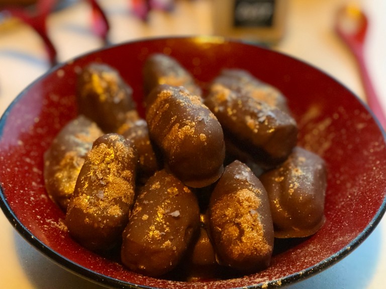 Dypp en og en daddel i sjokoladen.