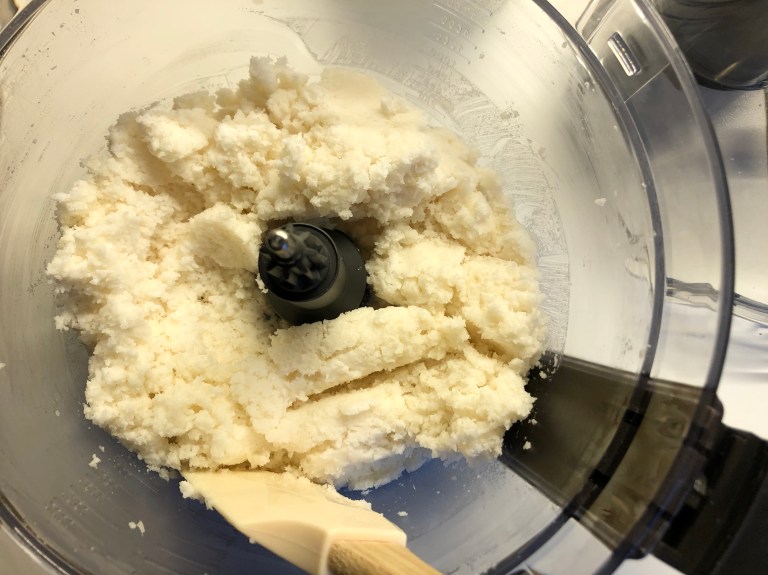 i en blender til det er godt blandet og har blitt en litt klissete masse.