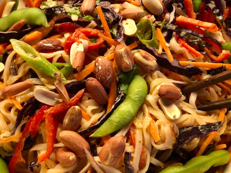 Dette er en enkel kald thaisalat med en supergod peanøttdressing.