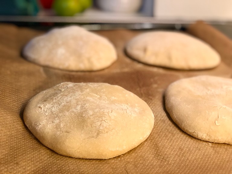 pitabrødene over på det brettet, sett tilbake midt i ovnen og stek de i 7-8 minutter.