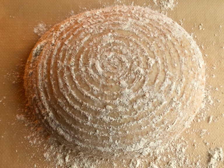 på benken i 1 times tid, mater den opp med 75 g speltmel og 75 g lunkent vann.