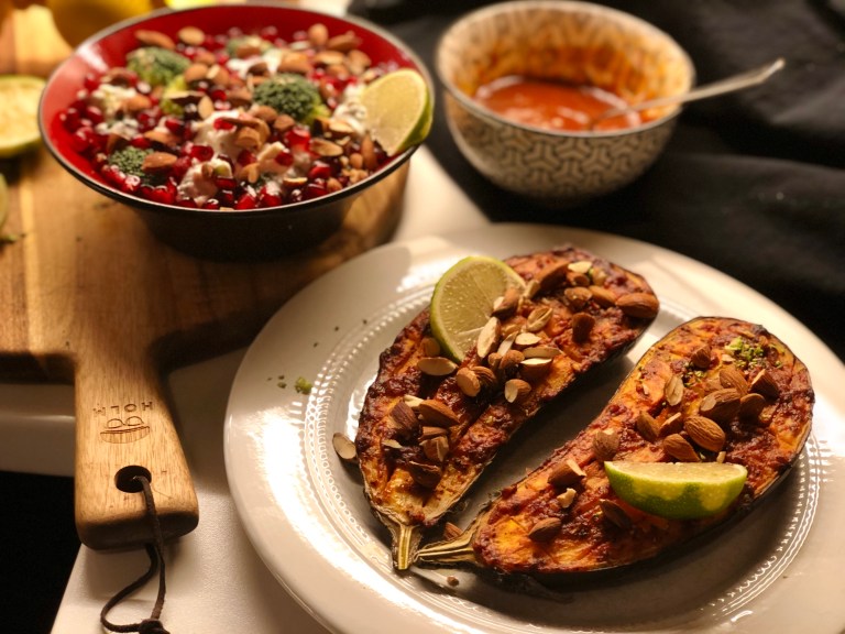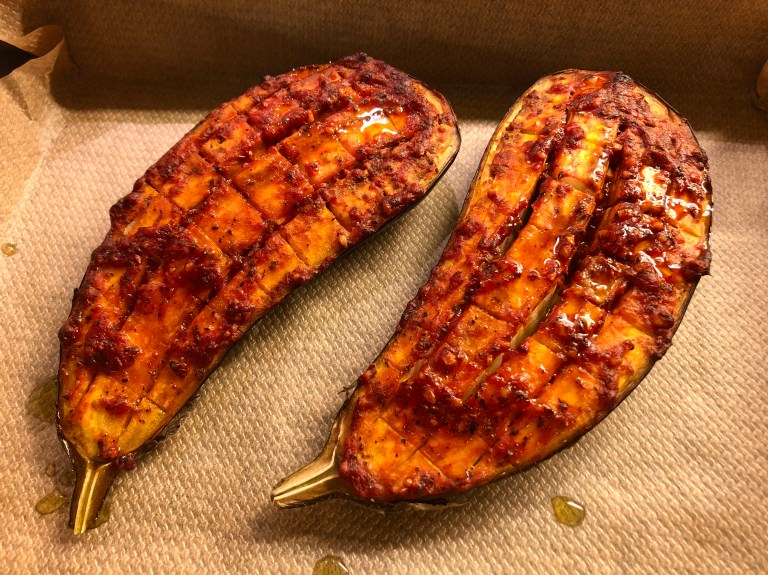Aubergine bakt i ovn er skikkelig godt!