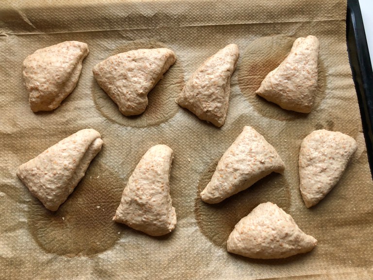 Legg de på et bakepapirkledt stekebrett og dekk til med plastfolie.