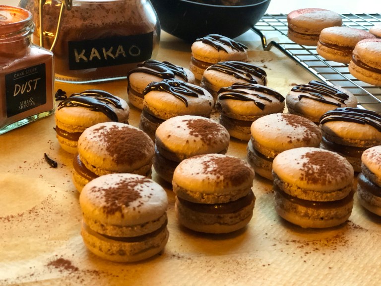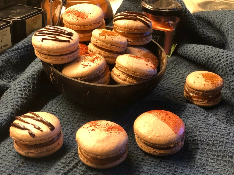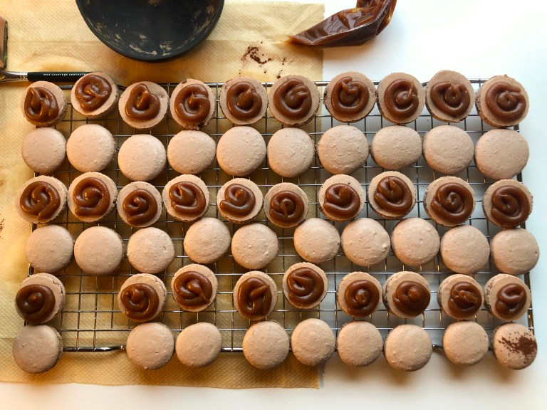 Disse utrolig gode sjokolademakronene er fyllt med hjemmelaget salt karamell.