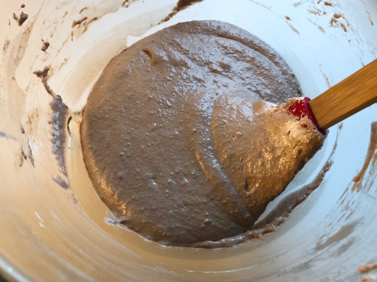 Du skal røre ut mest mulig luft og ha igjen en blank og fin røre, tyktflytende.
