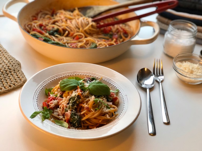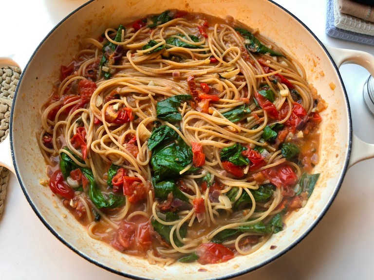 ONE PAN (POT) PASTA MED CHERRYTOMAT OG SPINAT
