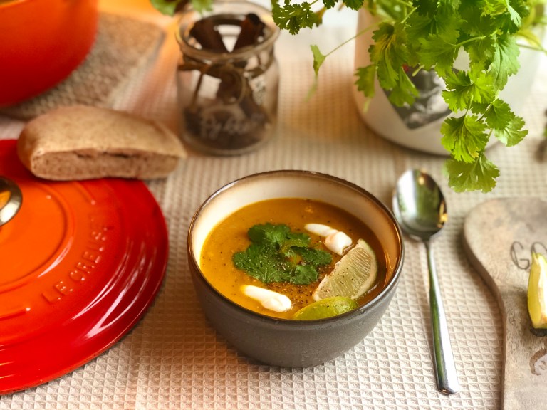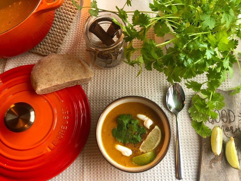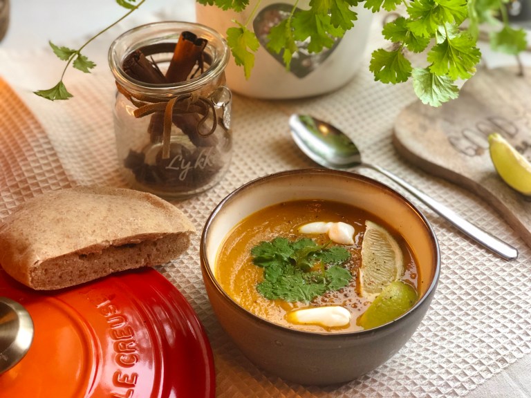 Serveres med koriander, gresk yoghurt, lime og godt brød til!