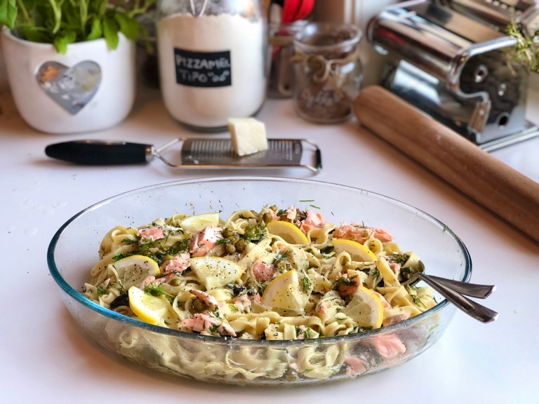 som jeg har gjort i denne retten så finner du oppskriften på pastadeig her.