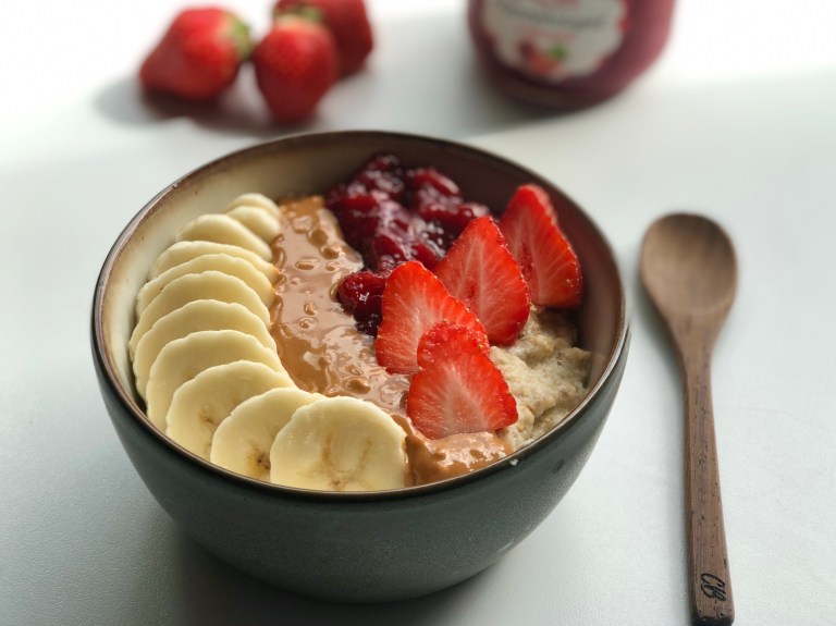 En skikkelig proteingrøt og den ble veldig god med deilig topping 🙂