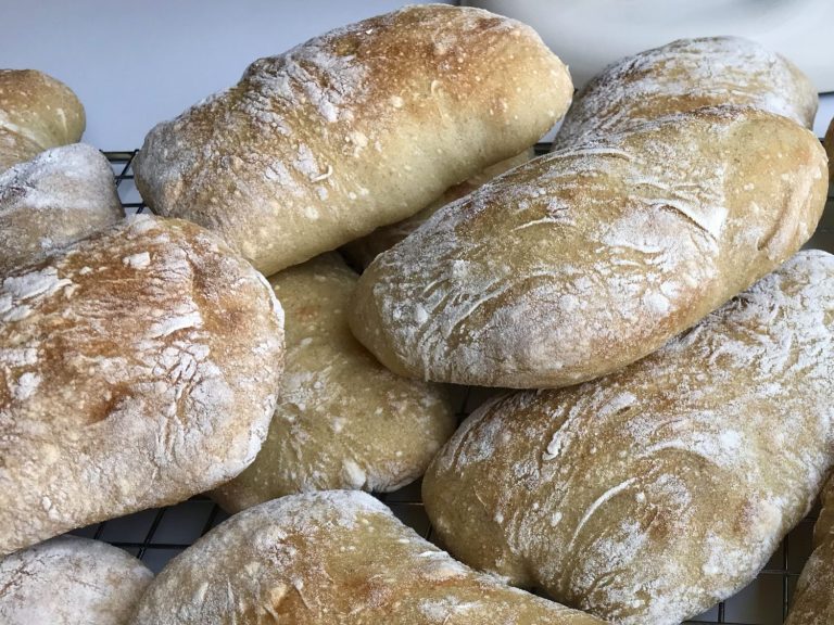 Disse ciabattaene er laget med speltsurdeig og fint speltmel og jeg