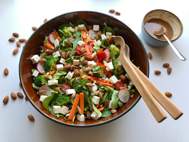 Server med resten av dressingen i en skål ved siden og nyt! 🙂