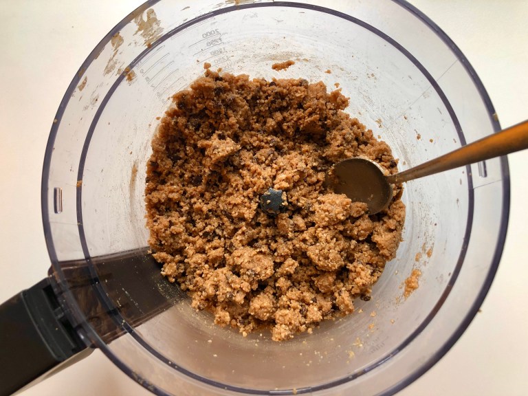 Ha alle ingrediensene, bortsett fra chocolate chips, i en foodprosessor.