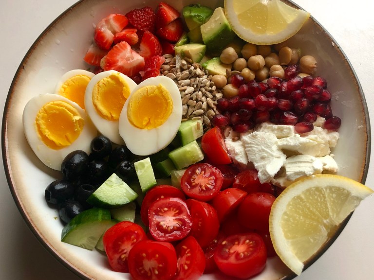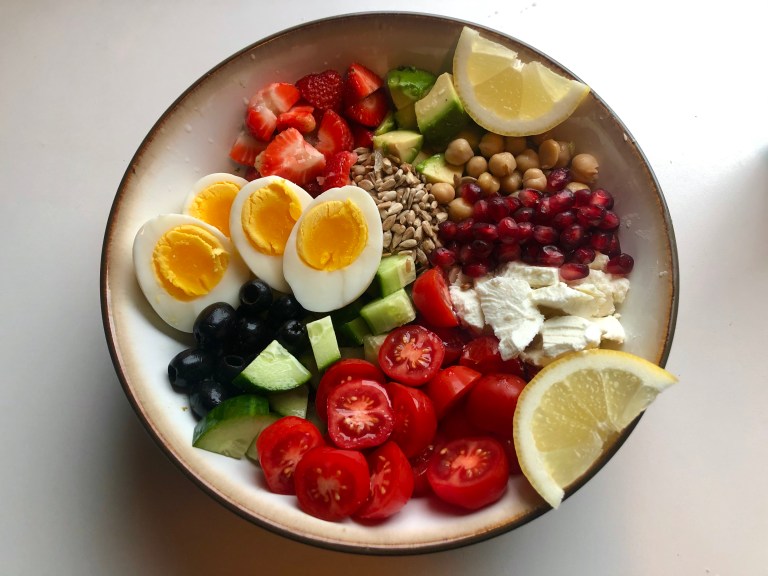 Har du litt diverse rester så kan du enkelt sette sammen en smakfull salat.