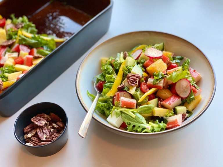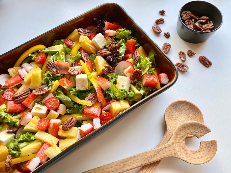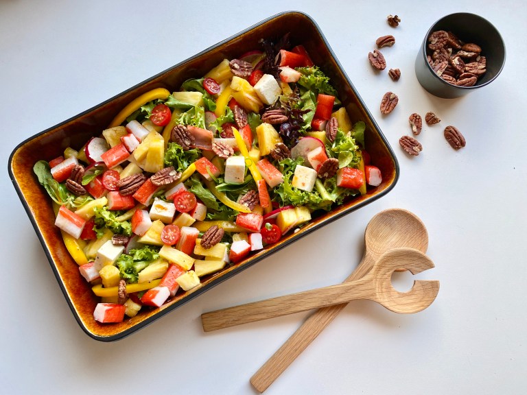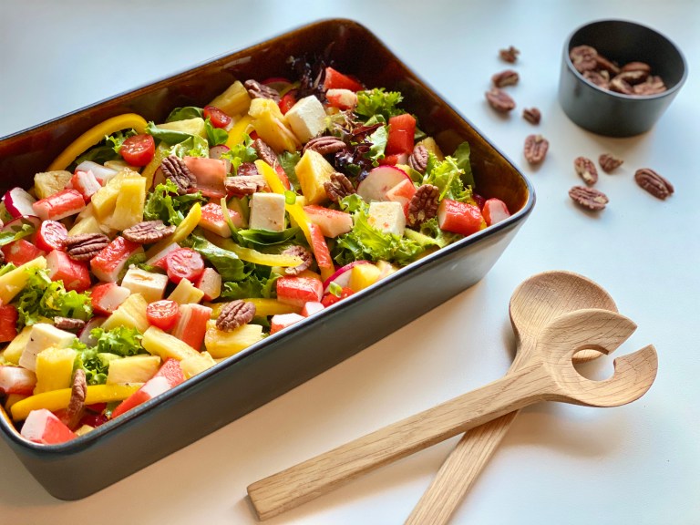 Med en enkel syrlig og søt dressing på smaker det fantastisk 🙂