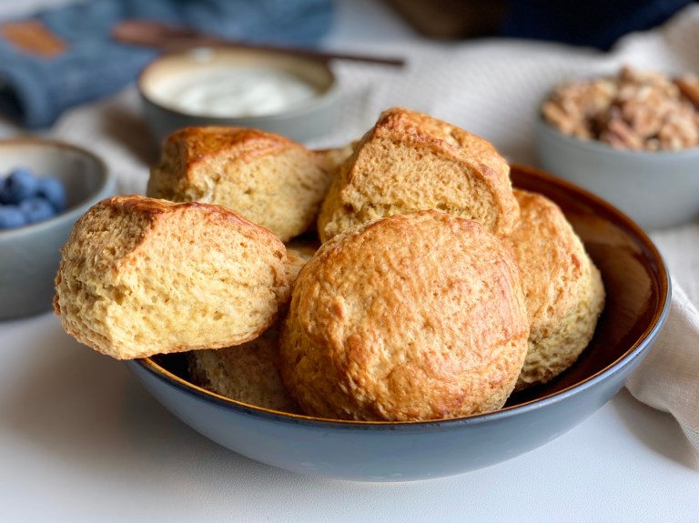 Helt enkle fine scones laget med yoghurt. Supermyke inni 🙂