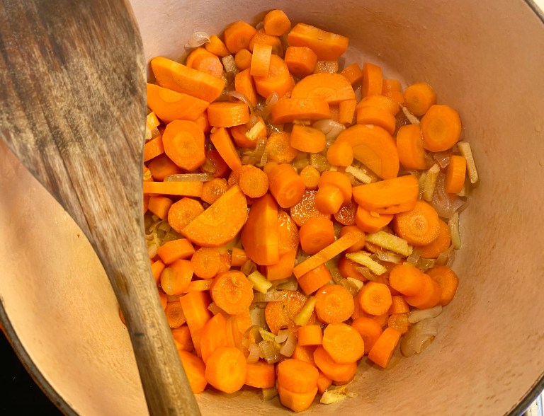 i 2 minutter og tilsett deretter gulrot og stek i 5-6 minutter til.