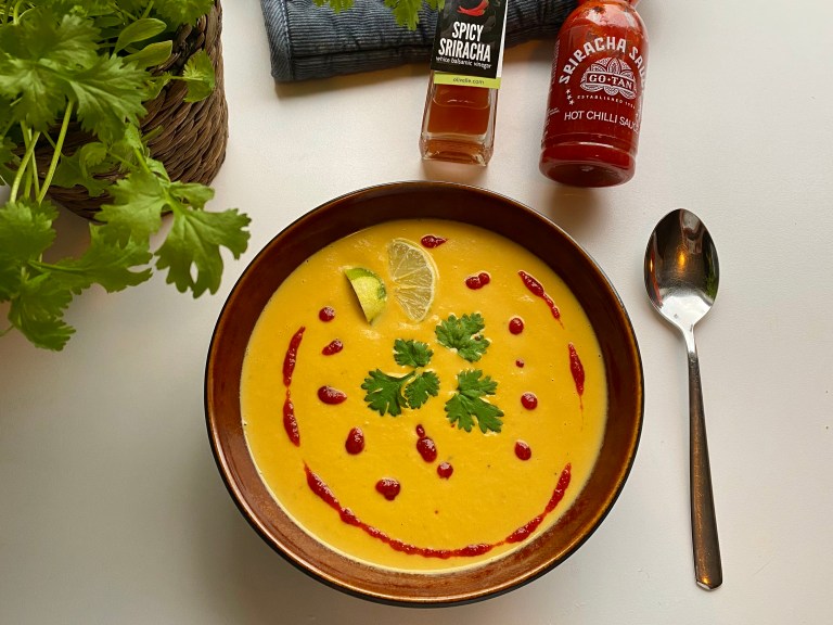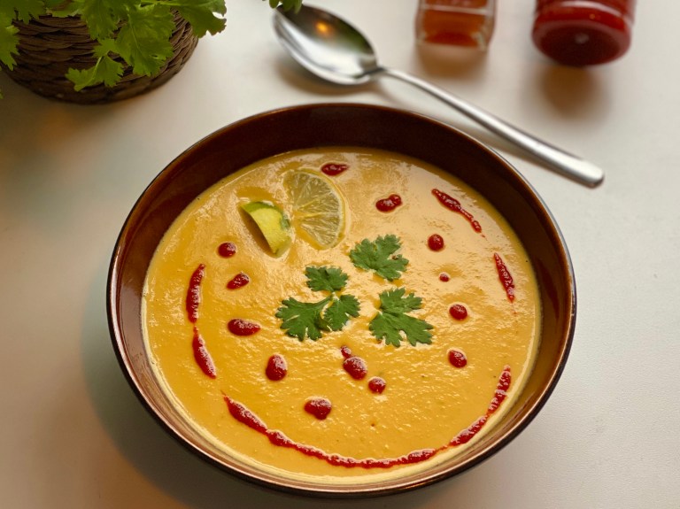 Denne suppen er bittelitt spicy av ingefær og er fyldig og deilig kremete.