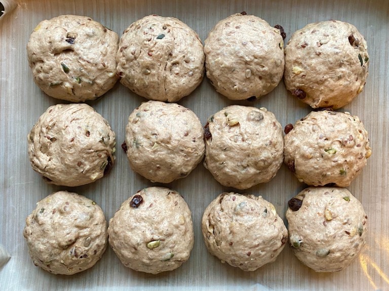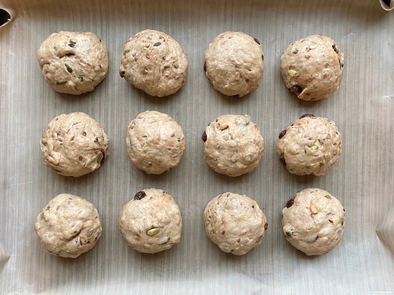 julens krydder, med frø, nøtter og rosiner. Disse ble skikkelig gode så her