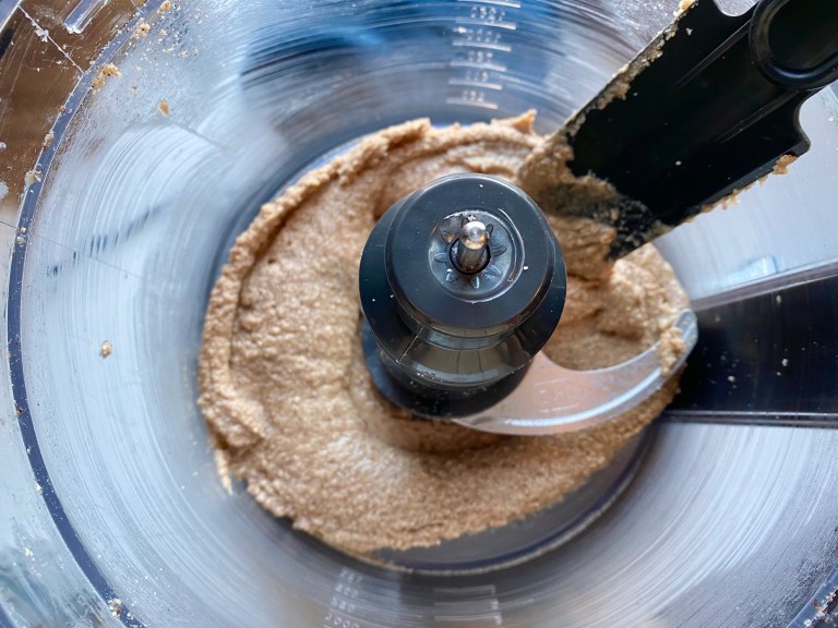 til det har blitt nøttesmør. Du må skrape ned langs kantene noen ganger.