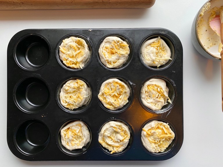 Legg de over i et smurt muffinsformbrett eller lignende.