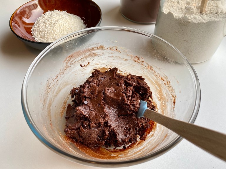 Massen blir tykk, myk og litt klissete og er da klar til å rulles til små kuler.