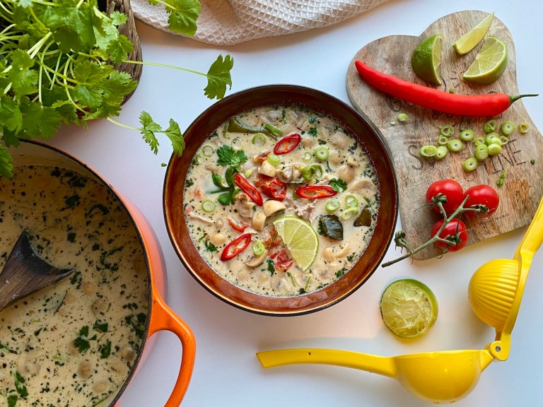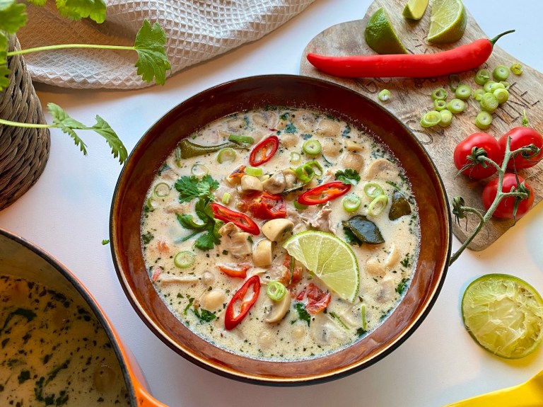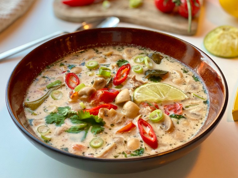En nydelig spicy kyllingsuppe fra Thailand med smaker fra kokos, sitrongress,