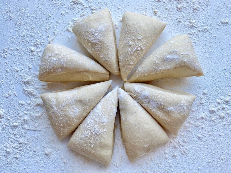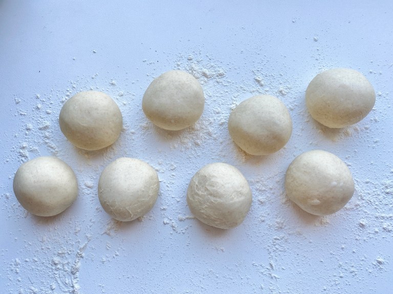 Ha deigen ut på benken, del i 8 emner og rull de til boller.