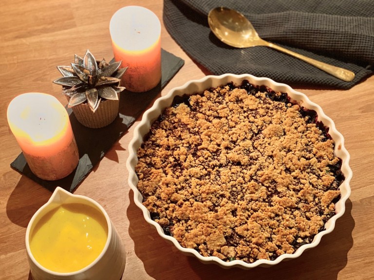 Blåbærsmuldrepai er en nydelig dessert som nesten gjør seg selv.