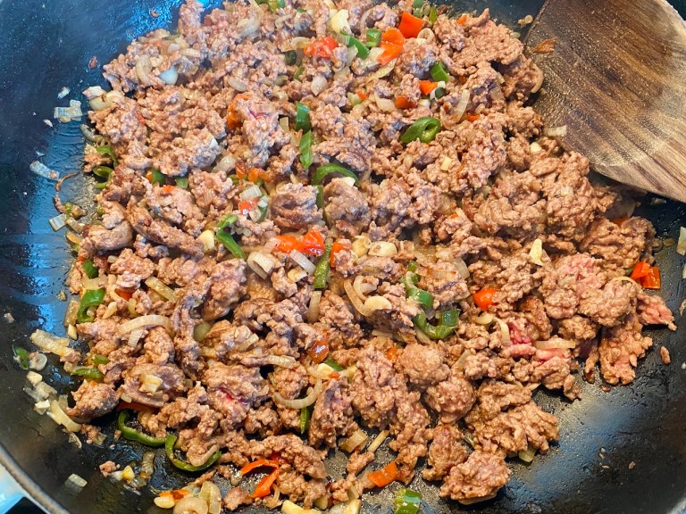 Ha det over i en bolle og sett til side til karbonadedeigen er ferdig stekt.