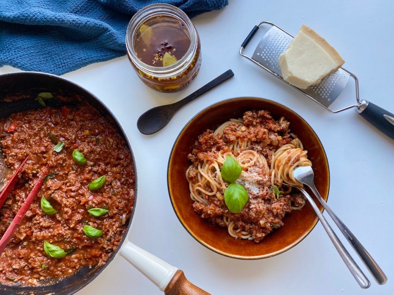 Spaghetti bolognese med et spicy kick av habanero chili og chili.