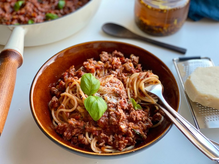 Spaghetti bolognese med et spicy kick av habanero chili og chili.