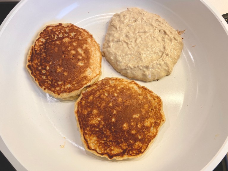 Disse grove havrepannekakene (lapper) er laget med gresk yoghurt naturell.