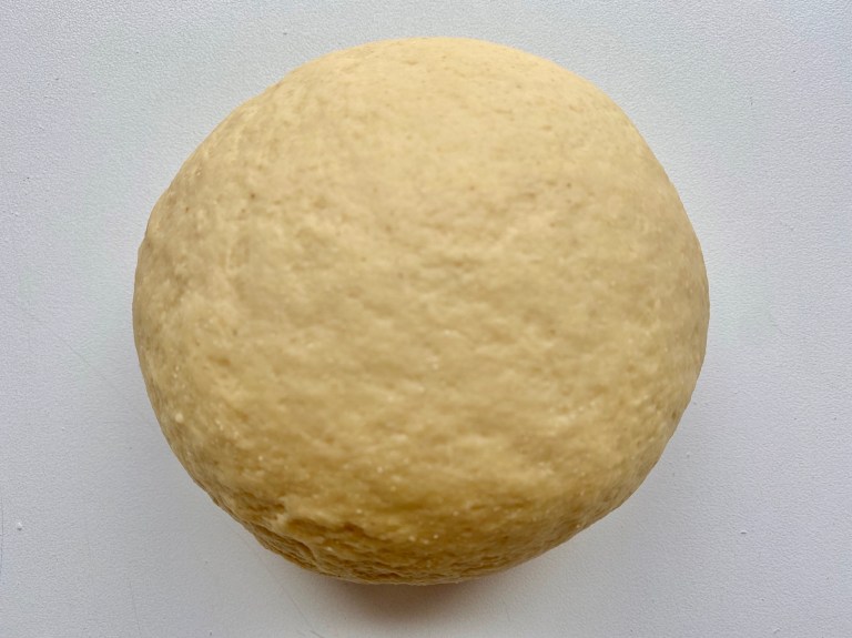 Når deigen har kommet sammen til en klump knar du den på benken i 5 minutter.