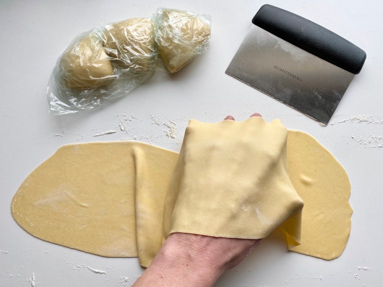 du ser konturene av fingrene igjennom. I pastarulle ruller jeg disse til 4 eller 5.