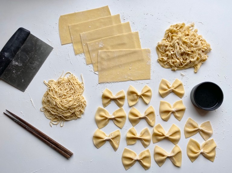 Jeg har laget noen forskjellige former. Spaghetti, tagliatelle, farfalle og lasagneplater.