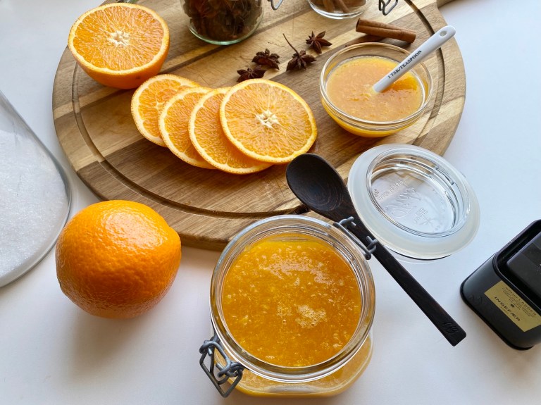 Ta ut kanelstangen og stjerneanisen og ha syltetøyet over i et glass med lokk.