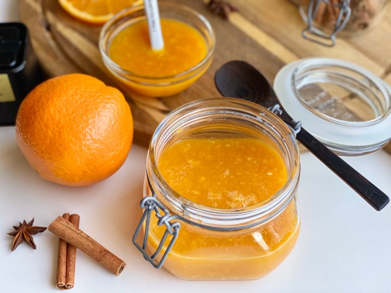 Ta ut kanelstangen og stjerneanisen og ha syltetøyet over i et glass med lokk.