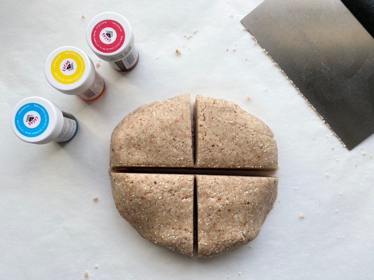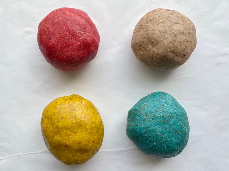 Ha litt farge på de forskjellige delene og kna det inn i massen.