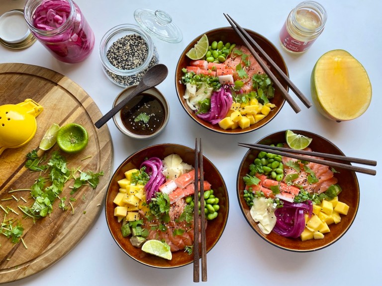 Servert med en hjemmelaget ponzusaus til. Så godt! Pokebowl 😋