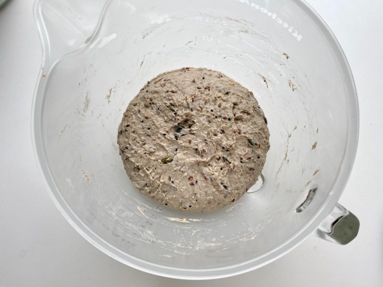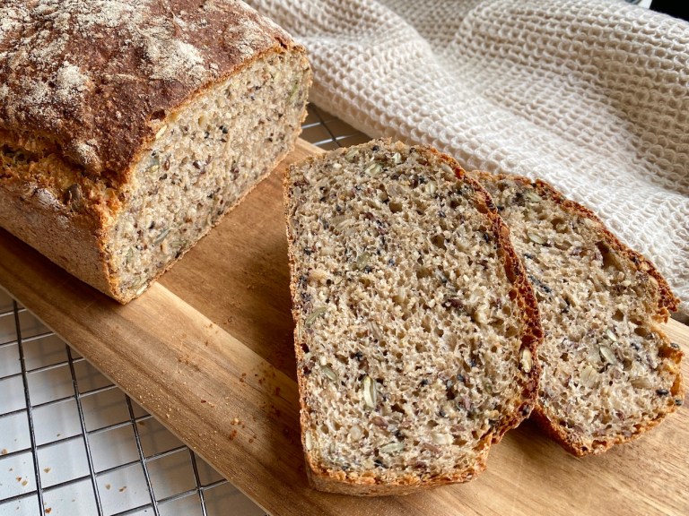 Saftig, sunt og godt grovbrød med fire varianter av frø. Supergodt faktisk!