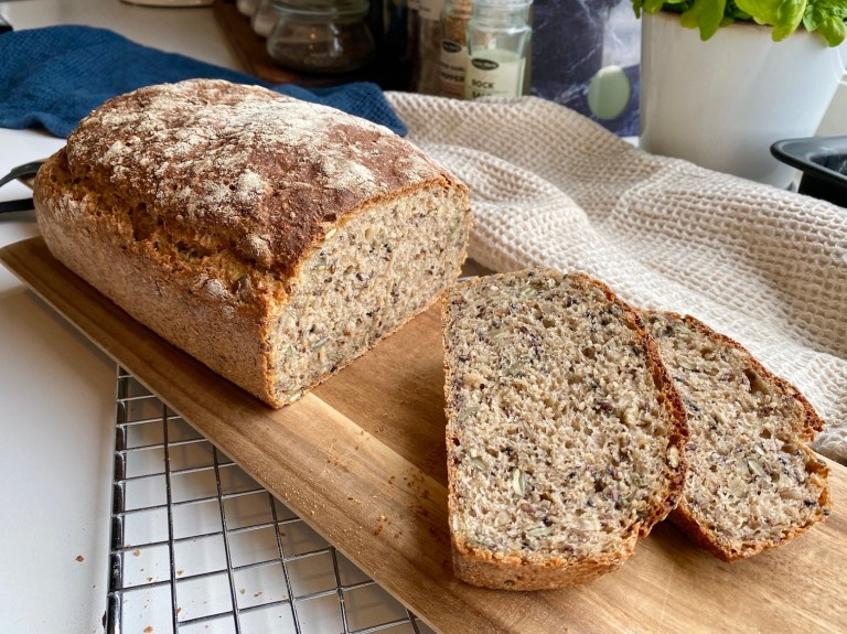 Saftig, sunt og godt grovbrød med fire varianter av frø. Supergodt faktisk!