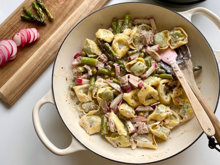 Kok tortelloni etter anvisning på pakken. Hell av vannet og sett til side.