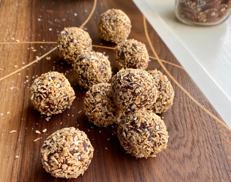 Rull kulene til slutt i resten av den ristede kokosmassen.