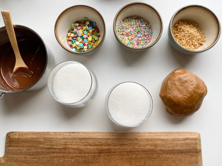 eller ristede sesamfrø, eller fargerike kakestrø du får kjøpt i butikken.