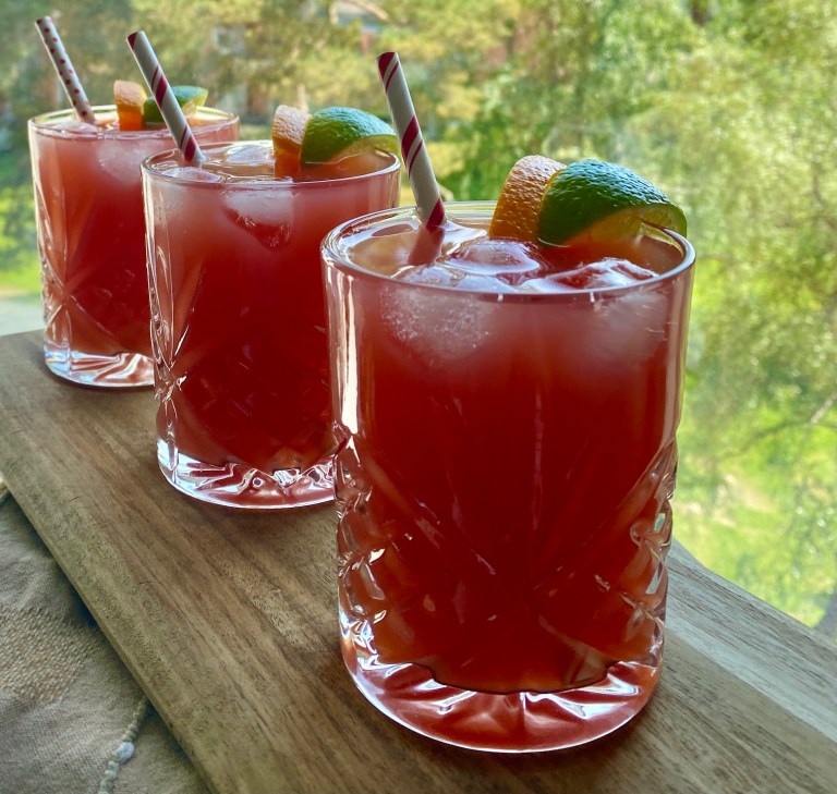 Bland sammen vodka, cranberry juice, appelsinjuice og lønnesirup.
